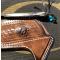 Lame inox assistée d'une pompe arrière, les cotes sont recouvertes de galuchat (cuir rare et précieux, peau de raie tannée).