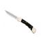 Couteau BUCK « 110 HUNTER » n° 110BRSFG, lame acier 420 à cran, manche 12,5 cm ébène avec empreinte de doigts, 2 mitres laiton, étui cuir noir.