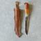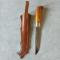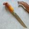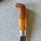 Poignée apparemment en bouleau madré de Carélie décorée de manière naïve d'un cerf.