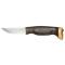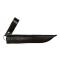 Un étui en cuir accompagne ce couteau, facilitant son transport sécurisé et son rangement. La longueur totale de 195 mm, avec une lame de 77 mm, permet une manipulation aisée et précise. Le manche, en lamellé collé, présente une finition en bois teinté noir, ajoutant une touche d'élégance et de confort à la prise en main.