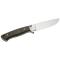 Le manche est en micarta vert texturé, offrant une prise en main confortable et sécurisée, même par temps humide ou boueux.