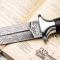 Chad Nichols a su forger l'acier du MG-42 pour devenir le coeur du poignard, une lame a double tranchant. Un motif Damascus sélectionné par Low Layer Raindrop (40 couches) prend tout son sens grâce au profil symétrique de la lame. Un tranchant lisse de forme Spear Point qui coupe comme une lame de rasoir.