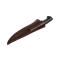 Le manche en érable frisé, de couleur bois naturel, assure une prise en main confortable et esthétique. La lame blanche complète harmonieusement l'ensemble, ajoutant une touche d'élégance à ce couteau d'exception. Un étui en cuir accompagne le couteau, facilitant son transport en toute sécurité.