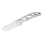 Un étui Kydex accompagne ce couteau, assurant un port sécurisé et pratique. La longueur totale de 169 mm, avec une lame de 73 mm, confère à cet outil une maniabilité optimale. Le manche en acier, avec sa finition grise, assure une prise en main confortable et stable.