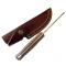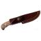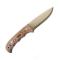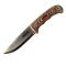 Manche fixé par vis en acier inoxydable Allen il est en micarta marron avec des entretoises noires pour un contraste subtile. Manche ergonomique et une sécurité fixe avec demi-garde.