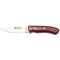 Un étui en cuir accompagne ce couteau, facilitant son transport en toute sécurité. La longueur totale de 190 mm, avec une lame de 95 mm, offre un équilibre parfait entre maniabilité et efficacité. Le manche en Stamina, avec sa finition en bois teinté rouge, ajoute une touche d'élégance et assure une prise en main confortable.
