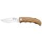Le manche en bois de Bocote, avec sa finition naturelle, apporte une touche d'élégance et garantit une prise en main confortable. La couleur blanche de la lame contraste harmonieusement avec le manche, ajoutant une dimension esthétique au couteau. Le système de sécurité Back Lock assure une utilisation sécurisée, en maintenant la lame fermement en position ouverte.