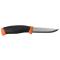 Le couteau fixe Morakniv Companion Burnt Orange (S) se distingue par sa lame en acier inoxydable 12C27, reconnue pour sa résistance à la corrosion et sa durabilité. Ce modèle présente un tranchant lisse, idéal pour des coupes nettes et précises. Le profil de lame Drop Point assure une polyvalence d'utilisation, que ce soit pour des tâches de découpe fines ou plus robustes.