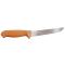 Le couteau fixe Morakniv Hunting - Straight Boning se distingue par sa lame en acier suédois recyclé, garantissant une robustesse et une durabilité exceptionnelles. Ce modèle est conçu spécifiquement pour le désossage, offrant un tranchant lisse qui facilite les découpes précises. Le manche en polymère, de couleur orange, assure une prise en main sécurisée grâce à son grip anti-dérapant, même dans des conditions humides.