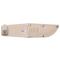 Un étui en cuir accompagne ce couteau, garantissant un transport sécurisé et une protection efficace de la lame. La longueur totale de 180 mm, avec une lame de 86 mm, permet une manipulation aisée et un contrôle parfait lors de l'utilisation.