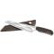 Le couteau fixe TB Outdoor Dravik se distingue par sa lame de 190 mm en acier japonais Acuto 440, réputé pour sa robustesse et sa capacité à conserver un tranchant net. Le manche en bois de Ziricote, avec sa finition naturelle, offre une prise en main confortable et esthétique. Le profil de lame reverse tanto assure une précision optimale pour des coupes variées.
