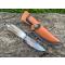 Le couteau est livré avec un étui en cuir épais fabriqué main, assurant protection et transport sécurisé.