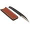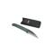 Une lame fixe grise de forme Sheep Foot. Tranchant lisse et qui coupe comme une lame de rasoir.