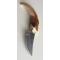 Couteau fixe lame Damas skinner Manche dent de phacochère Garde bronze Étuis cuir cousu