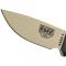 Une lame pleine soie en acier carbone 1095 avec un revêtement poudré couleur désert qui est appliqué sur la lame pour une meilleure protection contre la rouille. Sa forme est Drop Point avec décrochage au niveau de l'index.