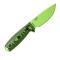 Une lame pleine soie en acier carbone 1095 avec un revêtement poudré couleur Venom green qui est appliqué sur la lame pour une meilleure protection contre la rouille. Sa forme est Drop Point avec décrochage au niveau de l'index.