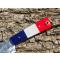 Un hommage à la France, le manche de 11 cm en plexiglas est conçu aux couleurs bleu, blanc, rouge.