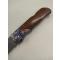 Couteau fermant lame en acier inox 420 patiné longueur 9.5 cms verrouillable manche avec mitres décorées plaquettes en bois de cocobolo longueur totale 22 cms