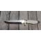 Manche : garde en laiton, manche résine blanche effet "ivoire", pommeau laiton