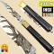 Le Fraraccio Sfilato est un couteau robuste et raffiné, parfait pour les chasseurs et amateurs d’outdoor. Avec ses 23 cm ouverts, il offre une belle présence en main et une ligne fine typiquement italienne. Sa lame inox de 11 cm assure un tranchant durable, tandis que son manche en résine noire de 12 cm garantit solidité et confort d’utilisation. La mitre en laiton apporte une touche traditionnelle et élégante.