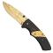 Couteau lame acier doré tête de mort manche bois acier 12cm