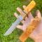 Couteau lame fixe acier damas style japonais avec étui intégral bois stabilisé#263