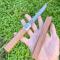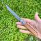 Couteau lame fixe acier damas style japonais insert nacre étui intégral bois #265