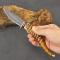 Couteau lame fixe motif damas laser manche fausse corne avec son étui #0121