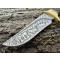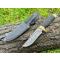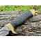 Avec sa lame gravée représentant des loups, son pommeau en forme de tête de loup, et sa construction robuste, ce couteau combine style artisanal,