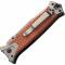 Couteau avec lame Spear-Point (9,7 cm) en acier inoxydable AISI420, recouverte de titane, est amenée en position ouverte à l'aide un pion d'ouverture et verrouillée en place par un liner lock. Poignée en bois de rotin usiné en CNC et mitres en acier inoxydable recouvert de titane. Discrète incrustation en acier inoxydable, adaptée aux petites gravures. Avec perçage pour dragonne, dragonne Paracord et clip de ceinture en acier inoxydable. Longueur totale 22 cm, poids 185 g.