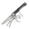 Un couteau EDC très compacte et équipé de plusieurs outils dont un tire-bouchon et ouvre-boîte.