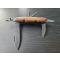 Couteau DOURIS CHASTEL « Navette », 6 pièces (grande lame et petite lame acier 12C27, tire-bouchon, ouvre-boîte décapsuleur, poinçon et tournevis), manche 10 cm olivier, avec étui cuir.