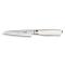 Couteau d'office Déglon Damas 67 Lame de 11 cm damassée 67 couches Composée d'une feuille d'acier VG10 contenant 1% de carbone, entourée de part et d'autre de 33 couches d'acier 420 et 431 riches en chrome et Nickel. Le résultat : un damas 67 couches offrant une grande qualité et longévité de coupe, une inoxydabilité renforcée. Manche en Corian : un matériau haut de gamme à base de roche latéritique blanche et de résine acrylique, aux qualités semblables au marbre : très bonne résistance aux chocs, aux taches, aux UV et aux bactéries.