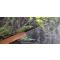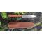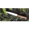 Le manche est monté en plate semelle avec des plaquettes en vieux chêne brun, collées et fixées par deux rivets en acier inoxydable.