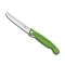 Couteau office pliant Victorinox lame crantée inox, bout rond, à cran intérieur, manche 13 cm vert
