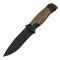 Un couteau fixe taillé pour l'aventure pour les amateurs de outdoor il sera le compagnon idéal. Lame pleine soie et large qui assure une stabilité maximale avec à son extrémité une partie saillante en forme de surface de marteau toujours utile dans certaines circonstances. il coupe comme une lame de rasoir. Lame lisse et noire de forme Drop point en acier Sandvik 12C27. Revêtement en titane pour améliorer la protection anti-corrosion. Manche en polypropylène bi-colore marron sable et noir avec une grande zone de préhension pour garantir une manipulation sûre et confortable par tous les temps.