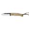 Le manche avec platine en acier Z40c13, plaquettes démontables en bouleau avec dessins striés et gravures, un petit orifice au bout du manche pour passer un cordon .