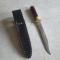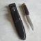 Tout est dans le titre : Couteau à ouverture assistée, grande lame avec marquage "Léopard" + représentation de l'animal, poignée bois dans son étui en cuir noir dont le fermoir est HS.