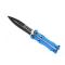 Couteau papillon Max Knives lame noire à trous acier inox, manche à trous 13 cm bleu