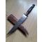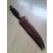 Couteau du tonkin .lors de la pacification du tonkin ,la France doit combattre des bandes de brigands ,ce sont les "ho" ,pirates noirs ou pavillons noirs.ils provenaient des restes de l'armée chinoise de tai-ping debandee apres sa défaite de 1864.c'est un couteau traditionnel chinois avec une lame (17,5 cm)et epaisse(7mm).longueur totale 28 cm environ.garde et pommerol en laiton ,manche en bois .etui en cuir marron d'origine