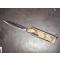 Le couteau est dans son jus, jamais affuté ni poli. Il semble que le "poinçon" soit abimé à la pointe, il manque deux vis d'un coté.