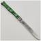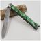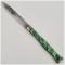Je vous propose ce beau couteau pliant de poche à cran forcé, mitres platines et ressort acier, plaquettes vertes matières à identifier, type queue de poissons.