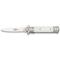 Couteau design type automatique à ouverture assistée par ressort ultra rapide. Une simple pression sur le talon de la lame la fait jaillir en position ouverte et verrouillée.