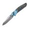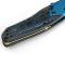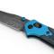 Tranchant lisse avec logo Benchmade sur la lame. Ouverture par ergot de pouce couleur bleu.