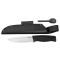 Le manche en TPE, de couleur noire, assure une prise en main confortable et sécurisée, même dans des conditions humides. La longueur totale du couteau atteint 230 mm, avec une lame mesurant 113 mm, offrant ainsi un équilibre parfait entre maniabilité et efficacité.
