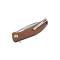 Le manche en Micarta, de couleur marron, confère à ce couteau une prise en main confortable et sécurisée, même dans des conditions humides. La finition stonewash de la lame ajoute une touche d'élégance tout en réduisant les reflets indésirables. Le système de sécurité Liner Lock garantit une utilisation en toute confiance, en maintenant la lame fermement en position ouverte.