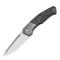 Le manche, de style classique avec ses des mitres en titane et des plaquettes en Marble Carbon, entretoise arrière à crans antidérapants et le clip fraisé en 3D (pointe vers le haut/droite), également en titane et dotés d'une finition microbillée.