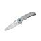 Le manche en titane, de couleur grise, procure une prise en main confortable et sécurisée, tout en ajoutant une touche de modernité au design. Le système de sécurité Frame Lock garantit une utilisation en toute confiance, en maintenant la lame fermement en position ouverte. L'ouverture par trou de pouce facilite le déploiement rapide de la lame, rendant ce couteau pratique et fonctionnel.
