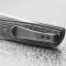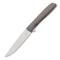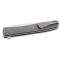 Lame blanche en acier VG10 et lisse type Clip Point et montée sur roulement à billes et qui s'ouvre avec un flipper. Manche en titane gris, un couteau au design très contemporain.