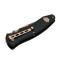 Tous les éléments, tels que le poussoir , les vis de lame et de manche, les entretoises, le liner, le clip et la plaque de clip de rechange , sont également plaqués or. La lame est sécurisée par un linerlock de 1,5 mm d'épaisseur. Le clip repositionnable (pointe vers le haut/pointe vers le bas) offre un transport pratique.